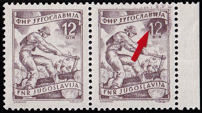 - Michel br. 722 vodoravni par kod kojeg lijeva marka ima vrlo zamrljan i mastan tisak