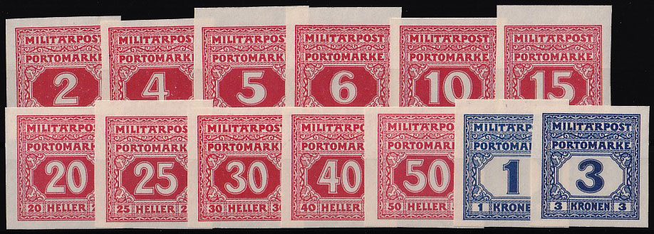 Opis: Michel br. porto 14/26 nezupčani niz, vrlo blagi falc. Rijetko.