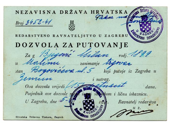 - NDH, dozvola za putovanje, ZAGREB, 1941, 152x108 mm, rijetko