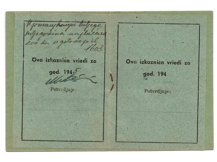 • NDH, iskaznica/osobna isprava za 1945-u godinu - Okučani