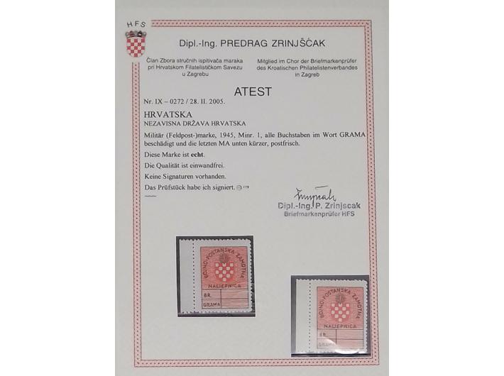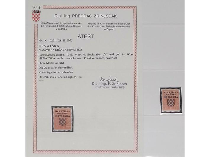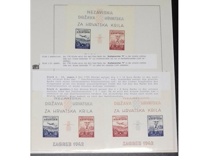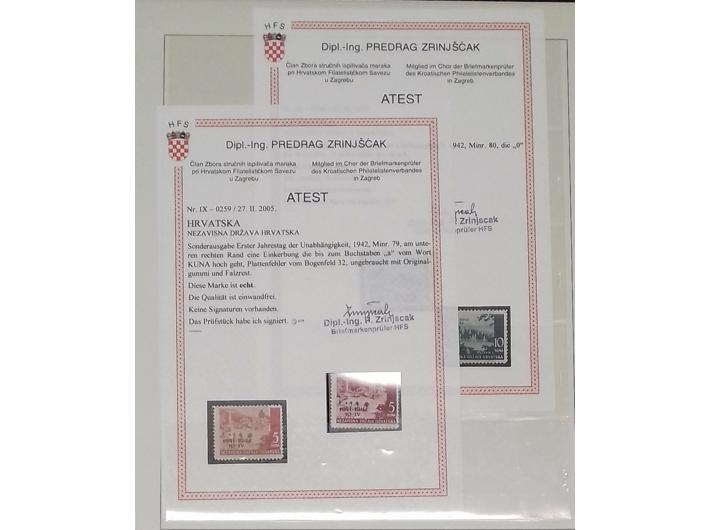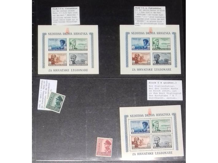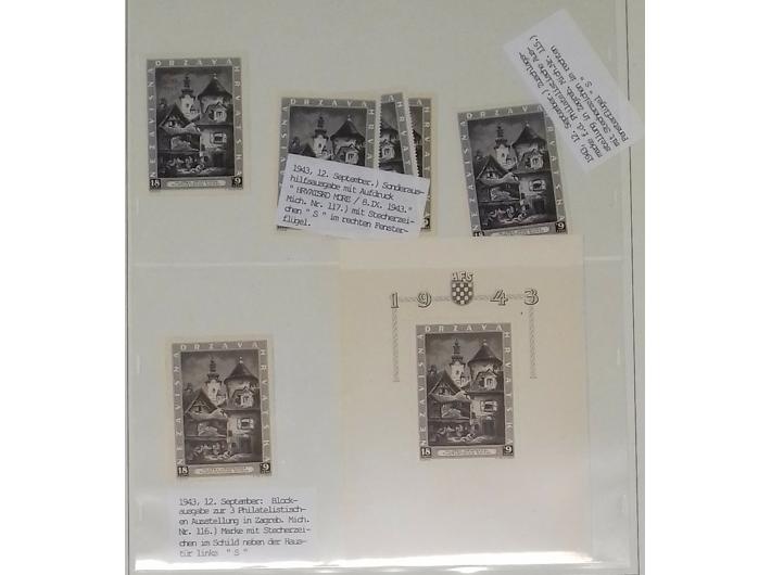 Opis: NDH, lijepa zbirka uglavnom specijaliteta, pogrešaka tiska i pretiska, oznaka gravera, dio atestiran. Nekoliko pisma, sve vrlo detaljno opisano. Obavezno pogledati.