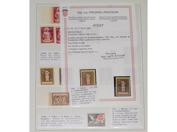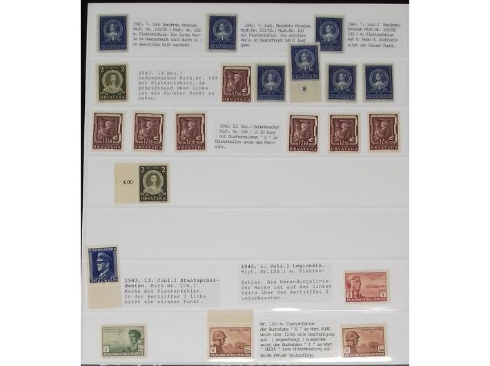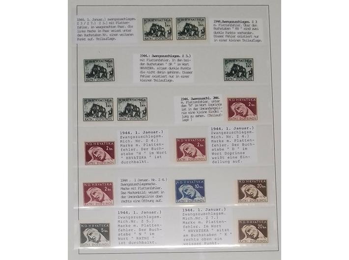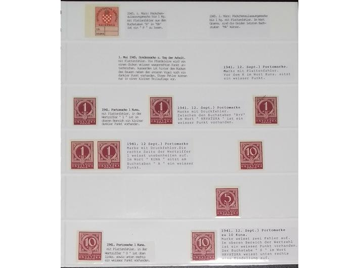 NDH, lijepa zbirka uglavnom specijaliteta, pogrešaka tiska i pretiska, oznaka gravera, dio atestiran.