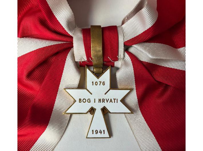 Opis: NDH, Velered Krune Kralja Zvonimira s hrastovim grančicama na lenti, najviše odlikovanje NDH, izuzetno rijetko