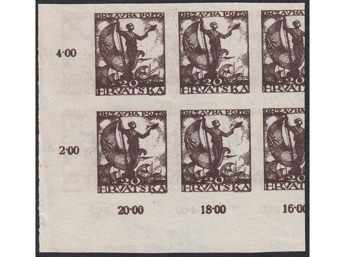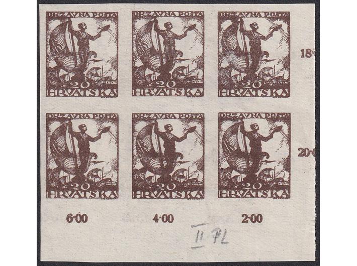 Opis: Nezupčani šesterac marke 20 filira obostrano otisnut. II ploča. Odlična kvaliteta.