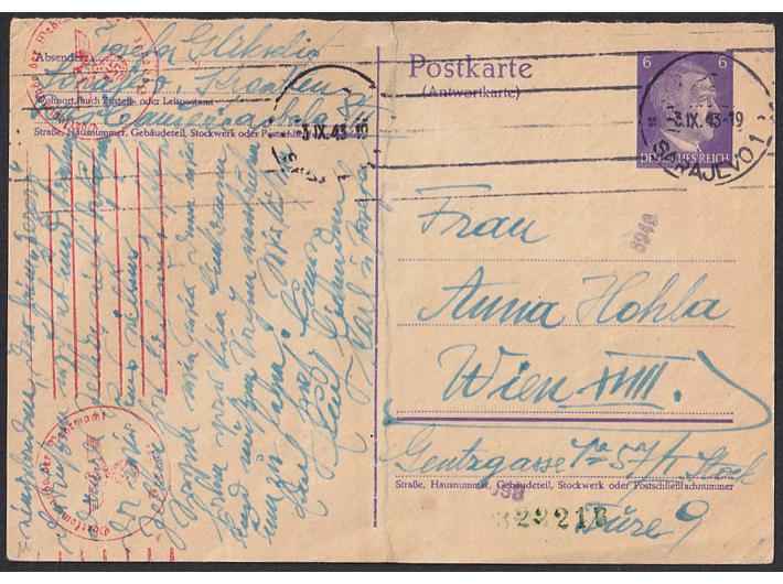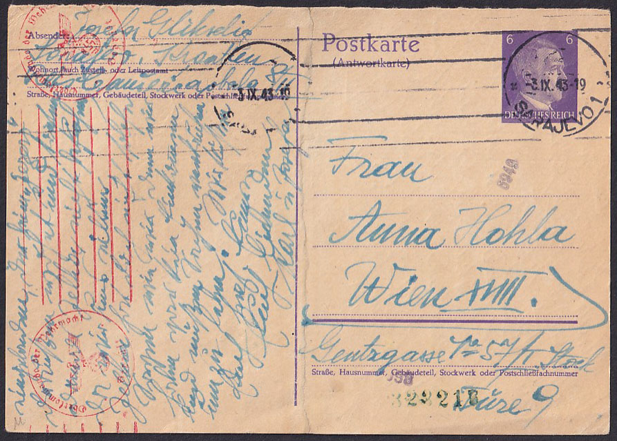 - Njemačka dopisnica upućena iz Sarajeva u Beč 03.09. '43.