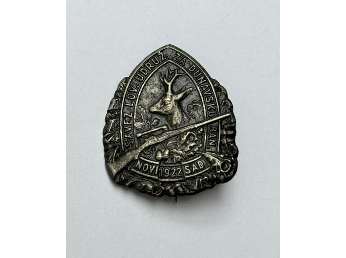 Opis: NOVI SAD, značka Dunavska banovina, savez lovačkih društava 1922, GRIESBACH i KNAUS, 25x30 mm