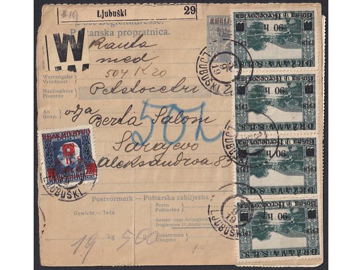 - Paketna karta za paket upućen iz Ljubuškog u Sarajevo 03.09. 1919.