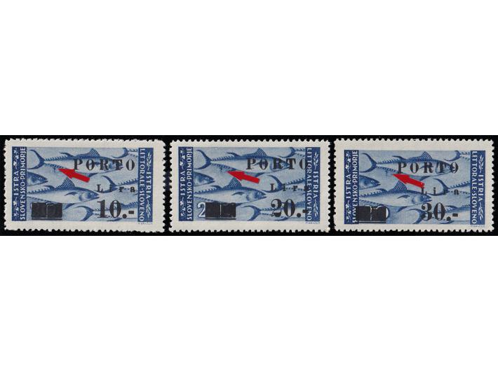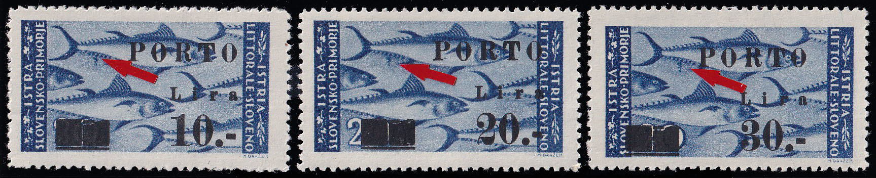 Opis: Peto porto izdanje, tri ključne vrijednosti s pogeškom tiska 68 polja, „mrijest“. Manje nepravilnosti na gumi, inače odlična kvaliteta.
