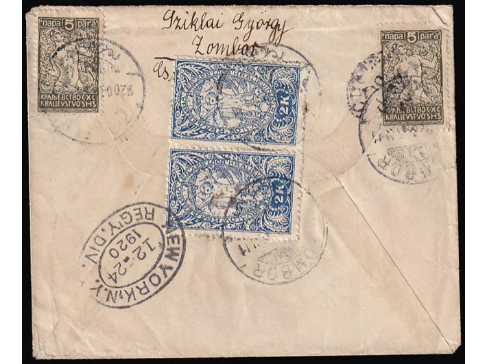 - Pismo malog formata preporučeno upućeno iz Sombora u Victoriu (Britanska Kolumbija) ? 12. 1920.