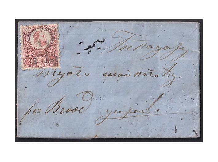 Opis: Pismo malog formata s kompletnim sadržajem pisano u Bosanskom Šamcu 28.10. 1872. (Gregorijanski kalendar) i upućeno iz Slavonskog Šamca 19.11. 1872. (Julijanski kalendar). Preko Slavonskog Broda. Manja oštećenja na poleđini. Tranzit na poleđini kao i slabo vidljiv dolaz.