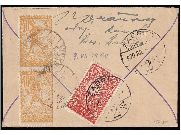 Opis: Pismo malog formata upućeno iz Vinkovaca u Zagreb 07.07. 1920. Frankatura i dolaz na poleđini. Odlična kvaliteta.