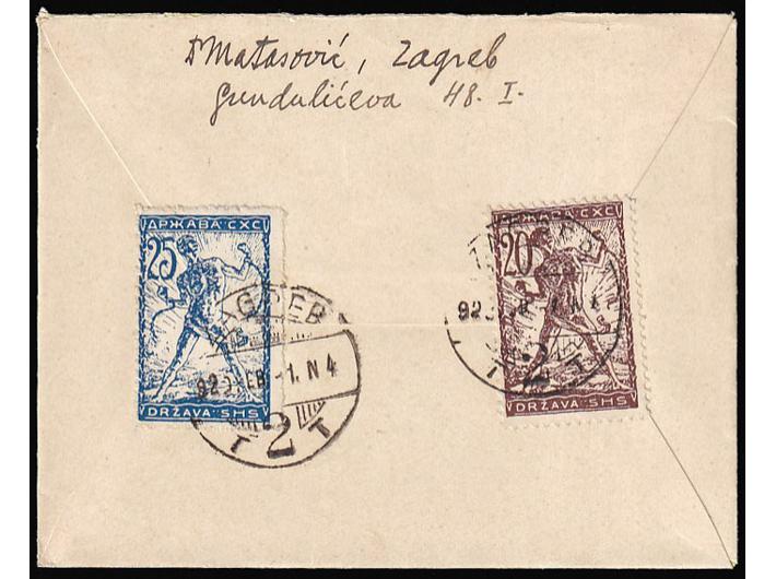 Pismo malog formata upućeno iz Zagreba u Vinkovce 01.02. 1920.