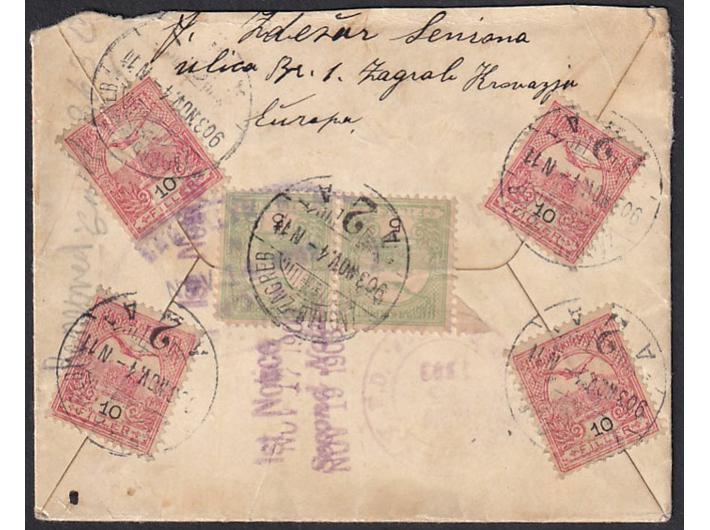 • Pismo manjeg formata preporučeno upućeno iz Zagreba u New York 04.11. 1903.