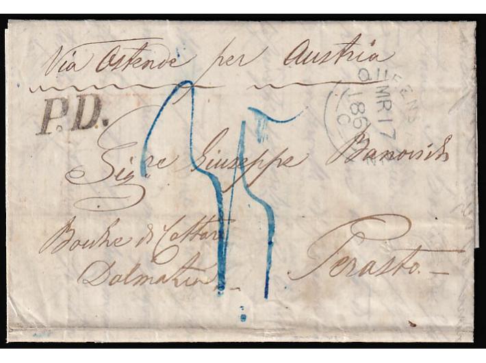 - Pismo manjeg formata s kompletnim sadržajem upućeno iz Engleske u Perast 17.03. 1860.