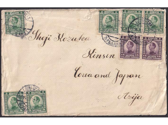 • Pismo masovno franirano i upućeno iz Ljubljene u Kinse (Korea) 14.03. 1924.