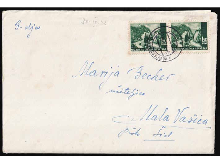 Opis: Pismo pisano u Ugljeviku i upućeno prugom BJELJINA-BOSANSKA RAČA u Malu Vašicu 27.09. 1942. Rijedak željeznički žig. Dobra kvaliteta.