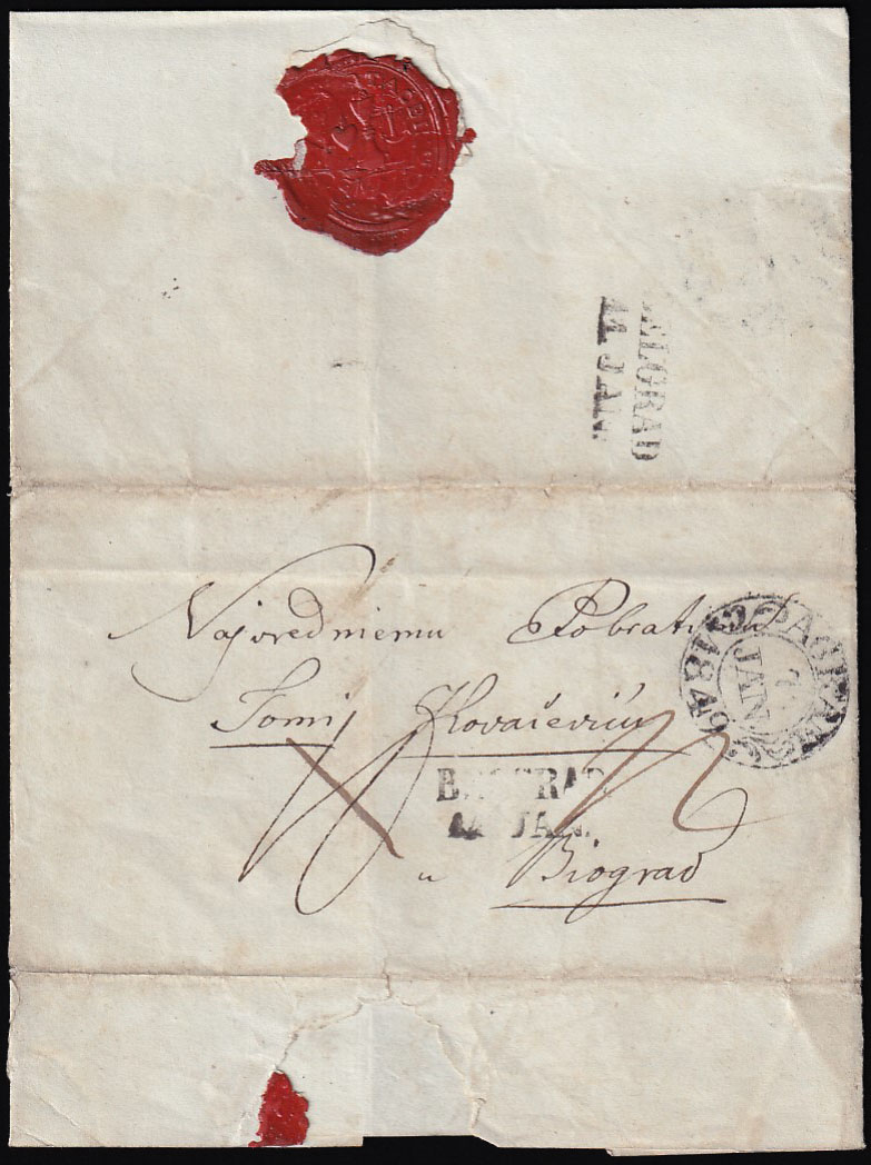 - Pismo s kompletnim sadržajem pisano u Ivanjskoj kod Bosanske Krupe te upućeno iz Zagreba 07.01. 1849 u Beograd.