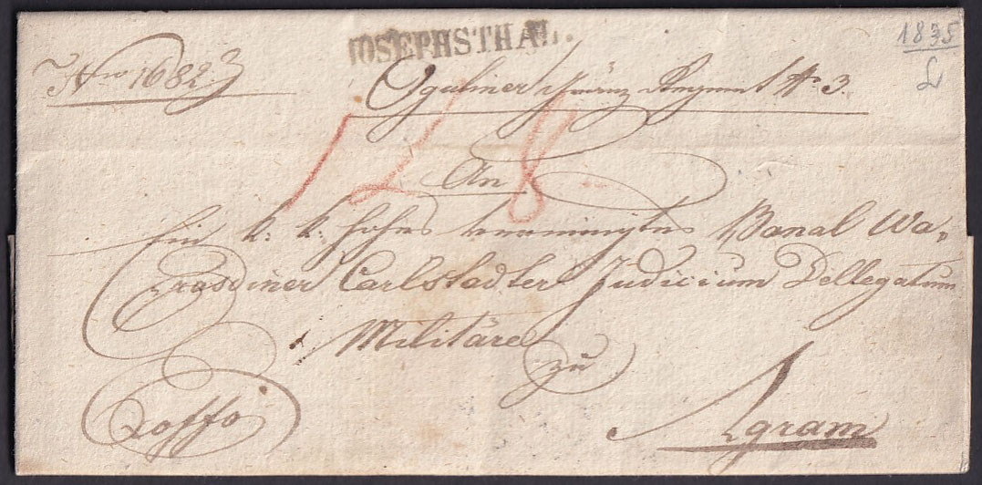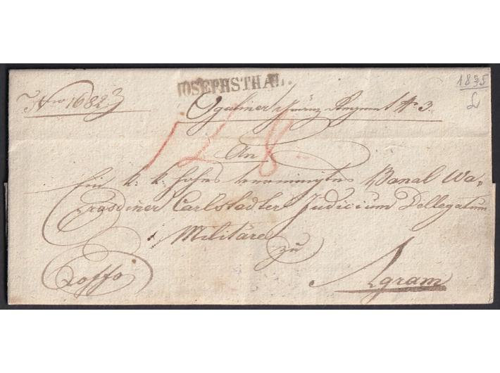 - Pismo s kompletnim sadržajem upućeno iz JOSEPHSTHAL (Josipdol) u AGRAM (Zagreb) 08.06. 1835.