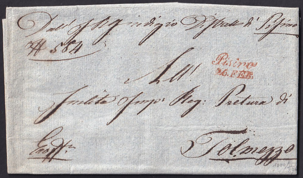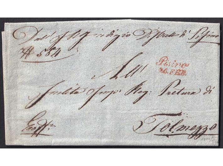 - Pismo s kompletnim sadržajem upućeno iz PISINO (Pazin) u Tolmezzo 22.2. 1840.