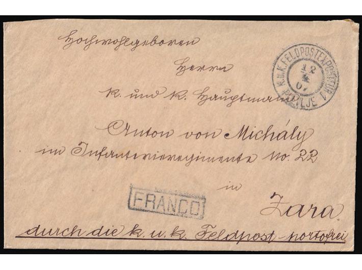 - Pismo upućeno iz Pljevlja (Sanđak) u Zadar 12.04. 1907.