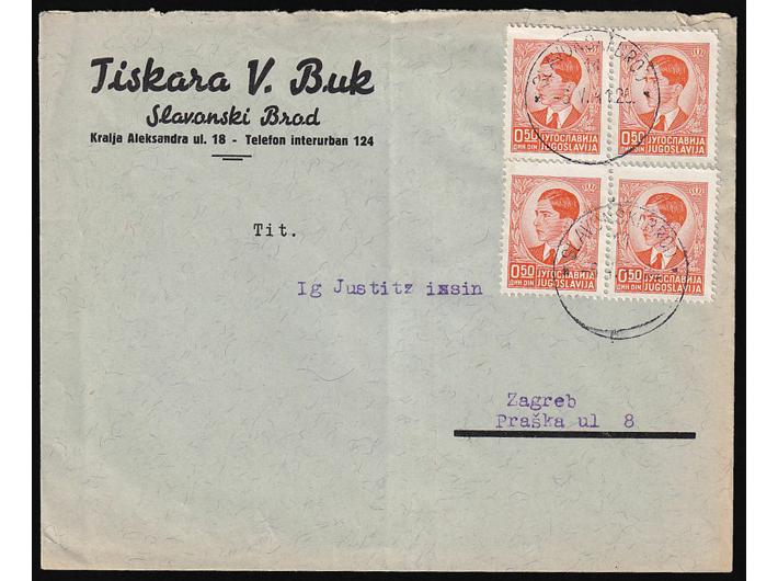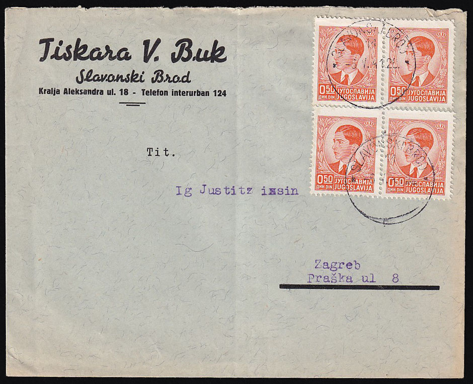Opis: Pismo upućeno iz Slavonskog Broda u Zagreb 06.05. 1941. Frankirano s dva para maraka 50 para kraljevine Jugoslavije. Blagi trag okomitog savijanja.