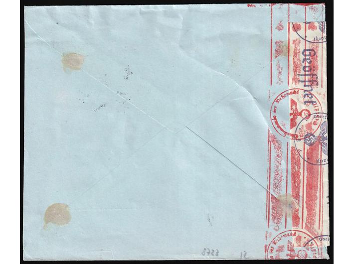 Opis: Pismo upućeno iz Zagreba u Njemačku. Frankirano markom 2 kn. krajobraz s oznakom tiskarske ploče II, te okomita crta preko margine i marke. Cenzurirano po OKW cenzuri. Dobra kvaliteta.