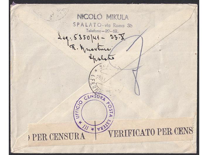 - Pismo upućeno zrakoplovom iz Splita u Švicarsku 25.11. 1942.