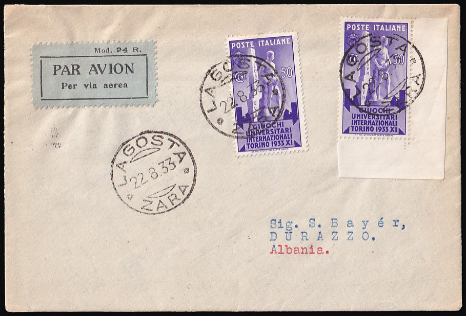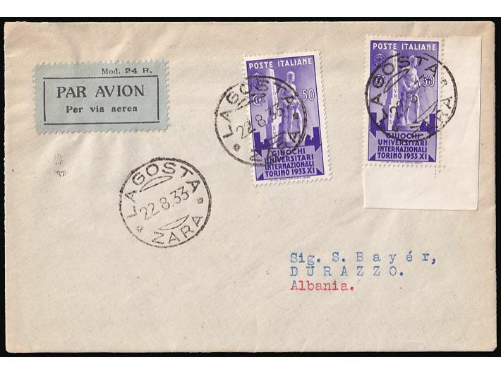 - Pismo upućeno zrakoplovom s Lastova u Drač (Albanija) 22.08. 1933.