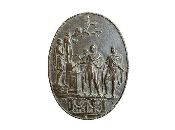 • Plaketa koja predstavlja žrtvovanje Herkulu (kasnije Silvanusu) - prikaz je originalno s Konstantinovog slavoluka u Rimu, AE 200x265 mm, talijanski rad, 18. stoljeće vjerojatno prema