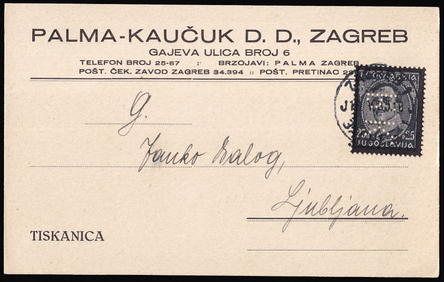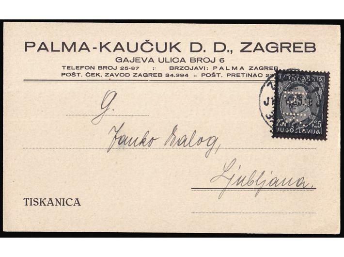 - Poslovna dopisnica tvrtke Palma - Kaučuk d.d. upućena iz Zagreba u Ljubljanu 16.07. 1935.