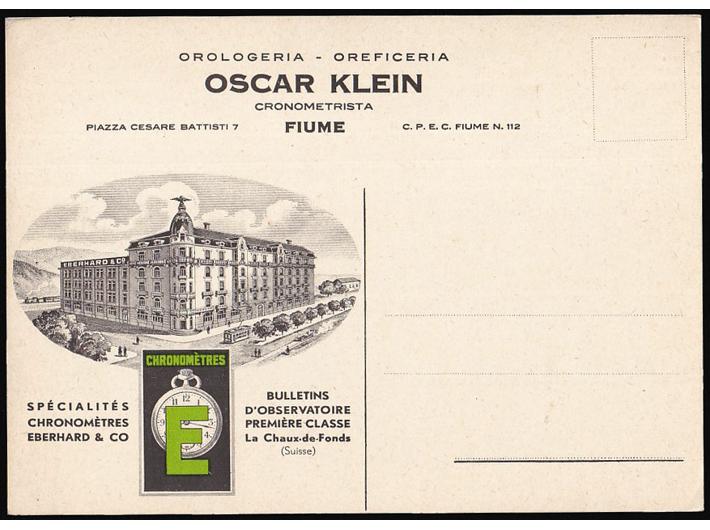 • Poslovna dopisnica urara Oscara Kleina iz Rijeke.