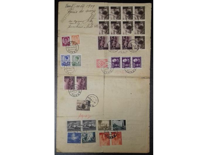 Opis: Poštanska punomoć za preuzimanje poštanskih pošiljaka kojom je Alija Šišić iz Vareša opunomoćio Muju Šišića da podiže i potpisuje sve vrste pošiljka koje dolaze na ime Alije Šišića. Punomoć vrijedi do opoziva. Punomoć je sastavljena 17.08 1939, a valjana je od 20.08. 1939 poništenjem biljega i dviju maraka niza Mali Petar. Na poleđini produžena za 1940 godinu 25.03. poništenjem dvaju maraka niza Mali Petar. 12.03. 1941 produžena za 1941 godinu poništenjem dvaju maraka niza Petar. 09.03. 1942 produžena poništenjem dvaju maraka niza krajobrazi. 10.09. 1943 produžena poništenjem marke 30 kn. niza krajobrazi. 20.01. 1944 produžena poništavanjem više krajobraza u iznosu od 100 kn. 01.02. 1945 produžena valjanost poništavanjem maraka krajobraza u iznosu 290 kn. 22.01. 1946 produžena valjanost poništavanjem maraka iz niza Tito i porto. Izuzetno rijedak dokument u dobroj kvaliteti koji je prošao tri državna uređenja. Ovakva kombinacija do sada nije zabilježena u literaturi. Izuzetno povoljna početna cijena.