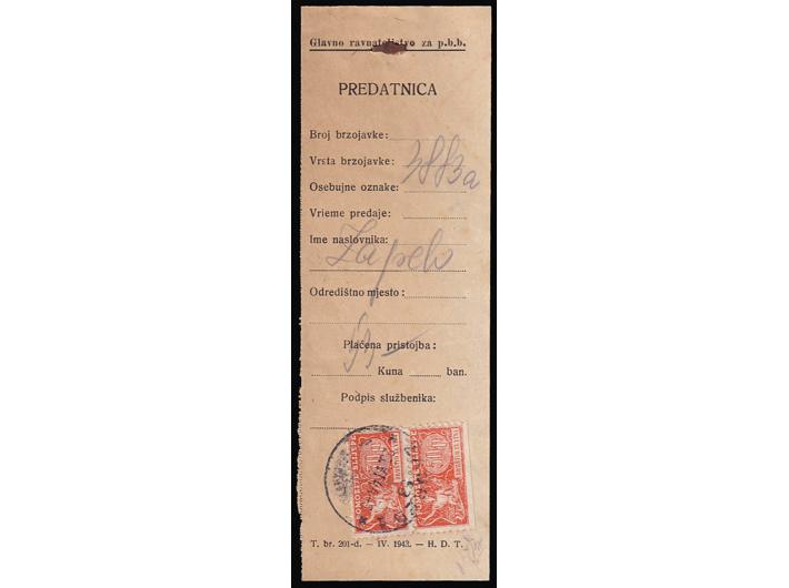 - Potvrda o predanom brzojavu u Zagrebu 29.06. 1944. na kojoj su poništene dvije naljepnice za pomoć slijepima iz doba kraljevine Jugoslavije.