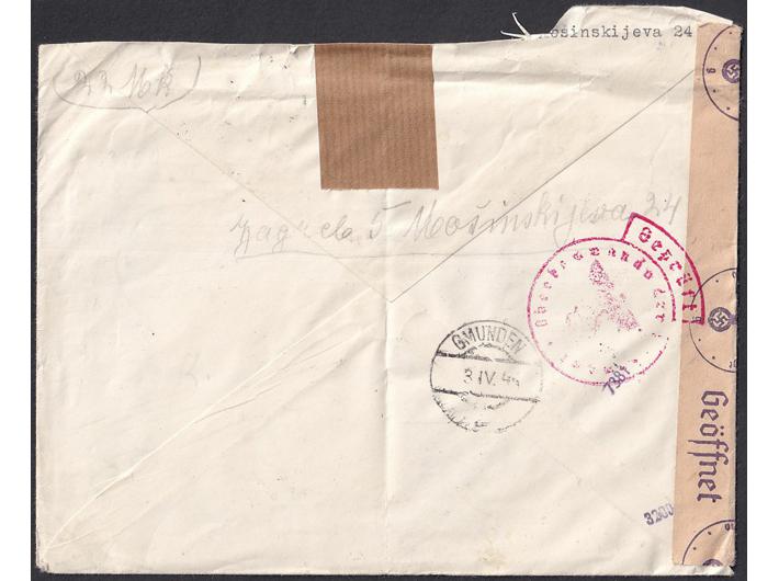 • Preporučeno i zrakoplovom upućeno pismo iz Zagreba u Gmunden 27.3. 1944.