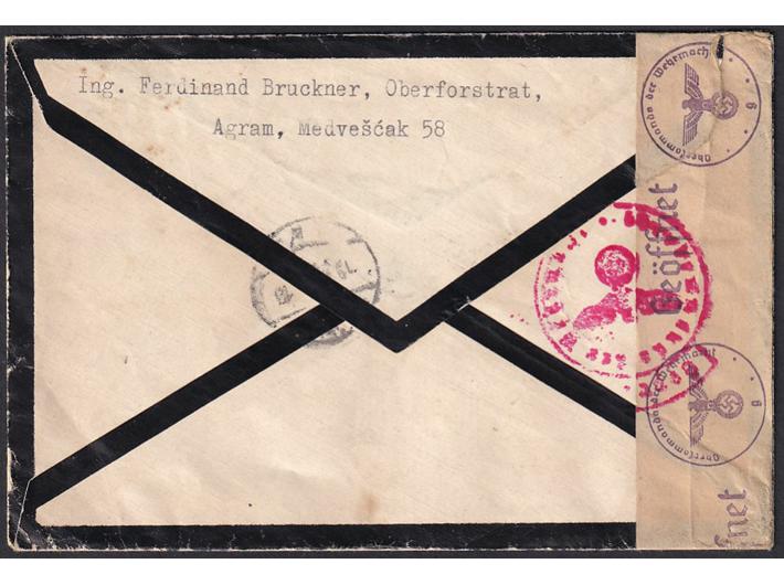 Preporučeno i žurno pismo upućeno iz Zagreba u Njemačku 11.9. 1944.