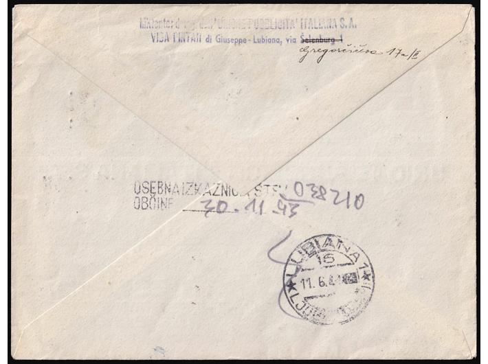 • Preporučeno i žurno upućeno pismo iz Ljubljane u Trst 11.06. 1944.