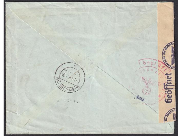 Opis: Preporučeno i žurno upućeno pismo iz Zagreba u Beč 15.01. 1942. Točna frankatra (pismo povlašteno za Njemačku 4 kn. preporuka 9 kn. i žurno 10 kn.) Cenzurirano po OKW cenzuri, dolaz na poleđini. Odlična kvaliteta.