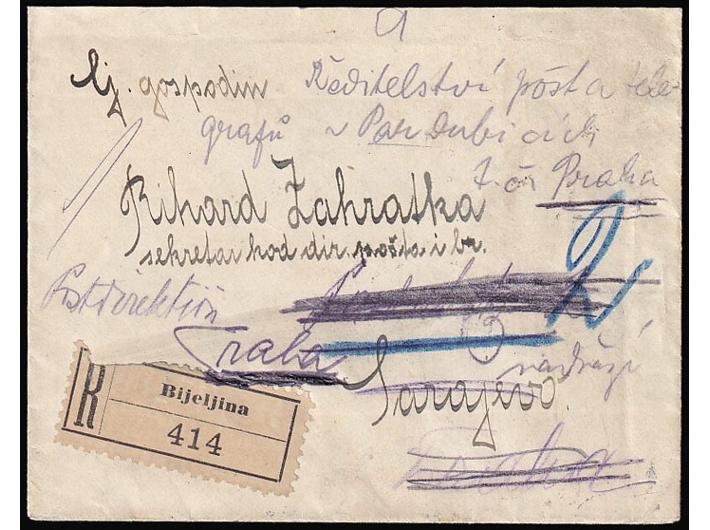 - Preporučeno pismo malog formata upućeno iz Bjeljine u Sarajevo 15.07. 1919.