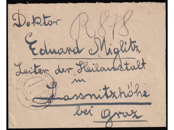 Preporučeno pismo manjeg formata upućeno iz Splita u Lassnitzhöhe kod Graza (Austrija) 26.06. 1920.