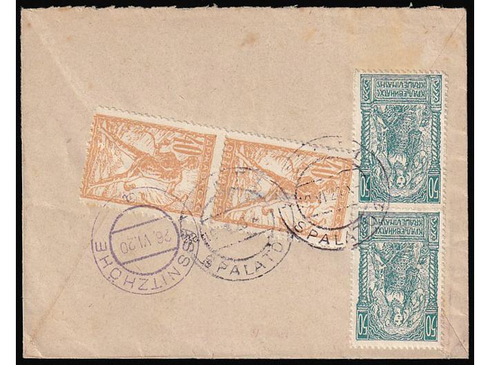 Opis: Preporučeno pismo manjeg formata upućeno iz Splita u Lassnitzhöhe kod Graza (Austrija) 26.06. 1920. Frankatura i dolaz na poleđini. Odlična kvaliteta.