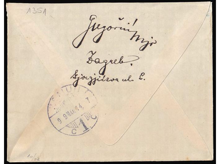 • Preporučeno pismo manjeg formata upućeno iz Zagreba u Zemun 12.03. 1919.