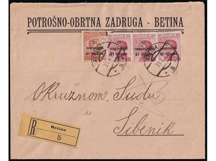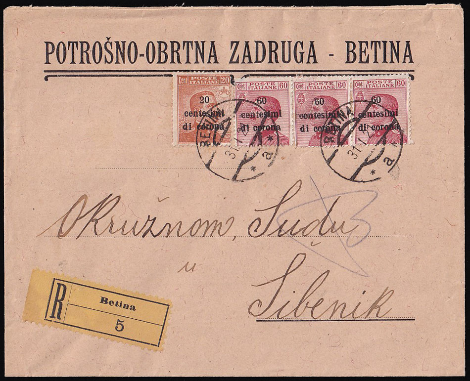 - Preporučeno pismo upućeno iz Betine u Šibenik 31.01. 1921.