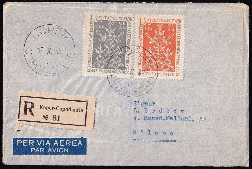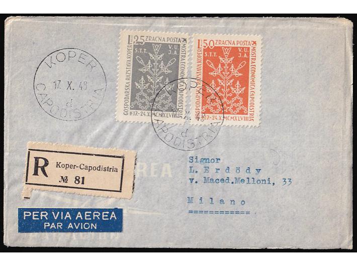 • Preporučeno pismo upućeno iz Kopra u Milano 17.10. 1948.