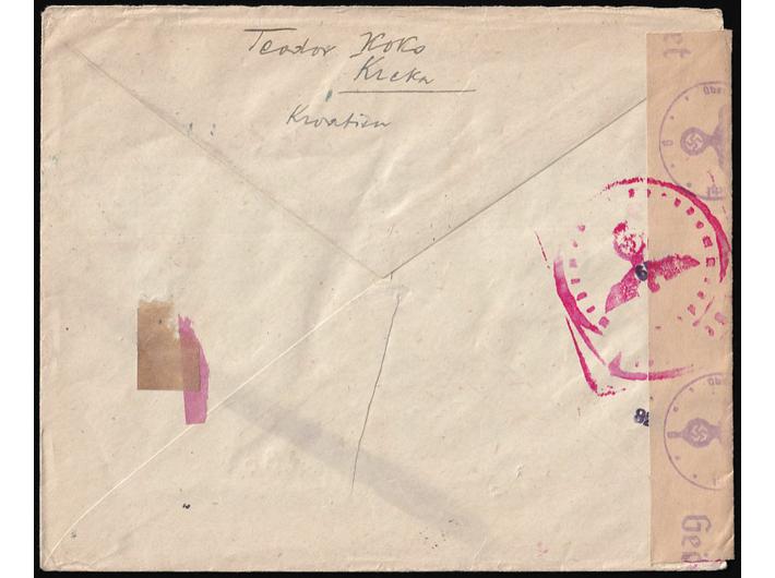 Opis: Preporučeno pismo upućeno iz Kreke u Švedsku 08.05. 1943. Cenzurirano po OKW cenzuri. Zanimljiva destinacija i rijetka frankatura prigodnim markama. Dobra kvaliteta.
