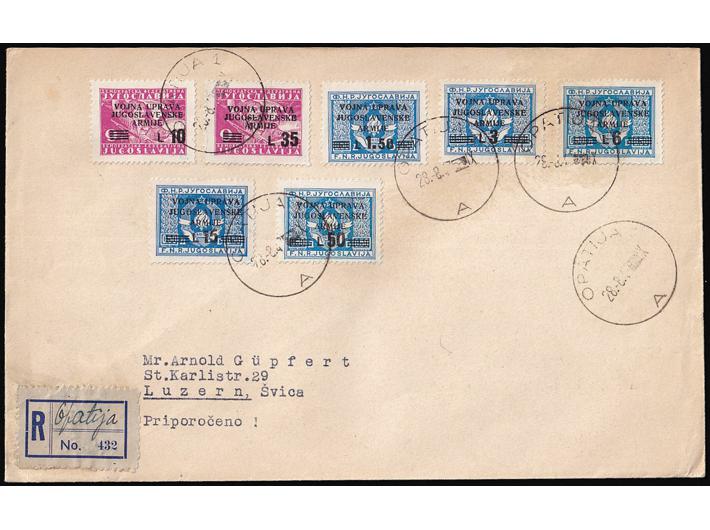 Preporučeno pismo upućeno iz Opatije u Luzern (Švicarska) 28.08. 1947.