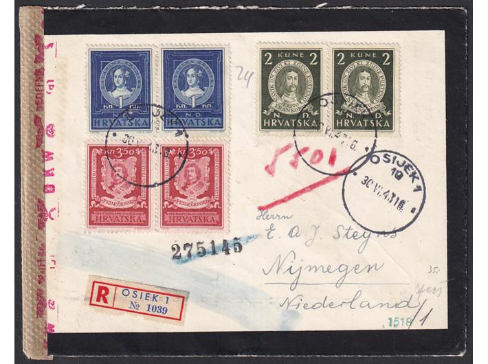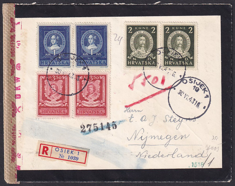 - Preporučeno pismo upućeno iz Osijeka u Nizozemsku 30.06. 1943.