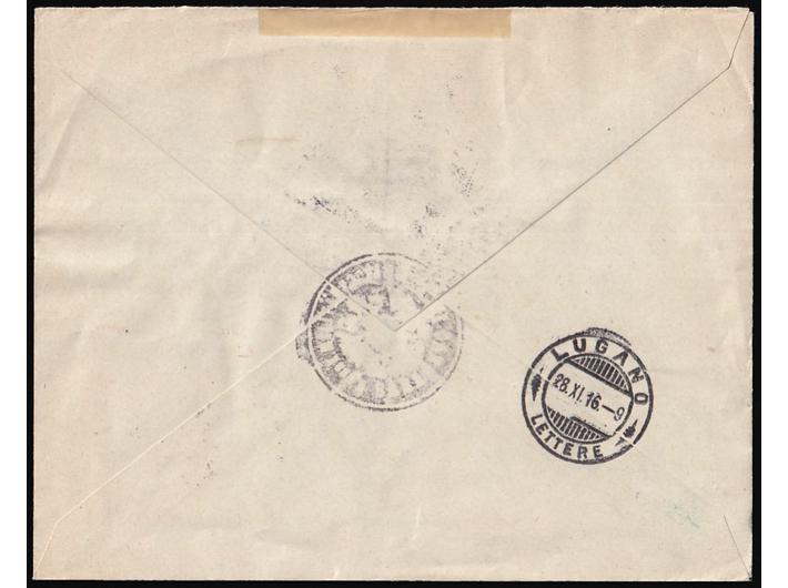 - Preporučeno pismo upućeno iz Sarajeva u Lugano (Švicarska) 16.11. 1916.