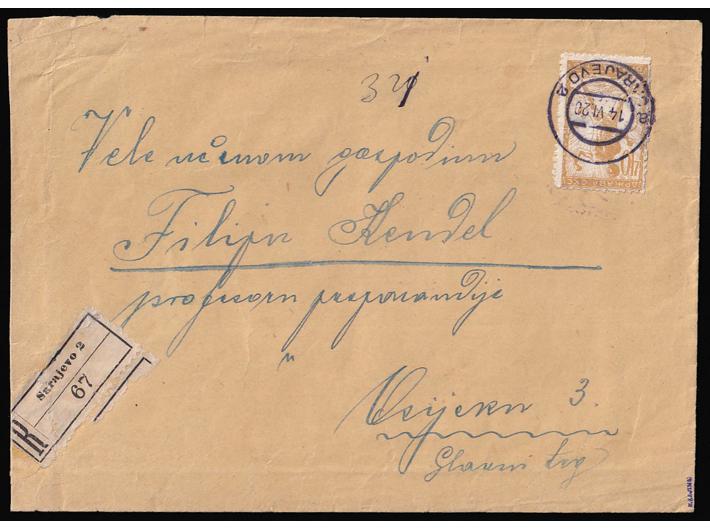 Preporučeno pismo upućeno iz Sarajeva u Osijek 14.06. 1920.