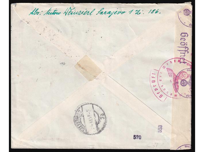 Preporučeno pismo upućeno iz Sarajeva u Salzburg 29.10. 1941