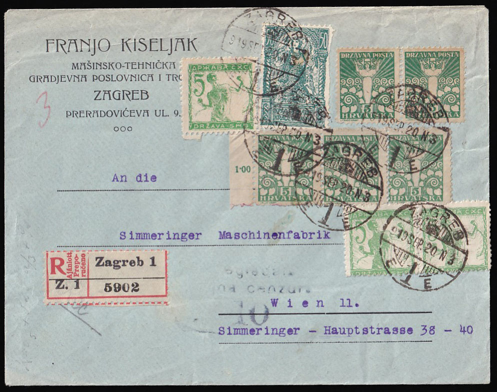- Preporučeno pismo upućeno iz Zagreba u Beč 20.09. 1919.